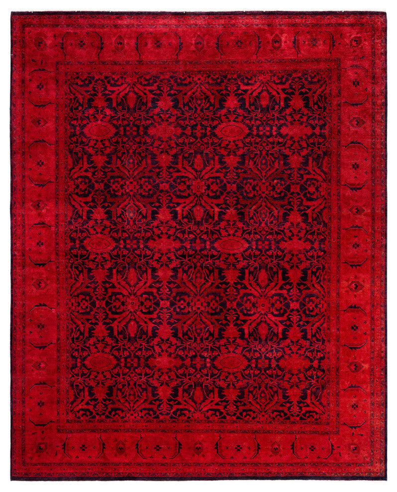 Overdyed area rugs blend vintage charm with bold, modern colors. This process involves taking distressed or faded traditional and antique rugs and saturating them with vibrant, monochromatic dye. This technique enhances the texture of the rugs while preserving the intricate patterns underneath. The result is a striking combination of old and new, with rich hues like deep blue, purple, or bright red. These rugs are perfect for eclectic and contemporary spaces, adding an artistic touch and serving as a dynamic focal point in any room.FeaturesHandcrafted by our team of experts in PakistanExceptional durability with 256 knots per inch constructionConstructed of 100% wool for a soft and cozy feelConvenient 8'' 2" x 10'' 3" dimensions offer the perfect balanced and inviting rug presenceNote that slight color variations may occur due to monitor differences. Embrace the individuality of each rug with minor variations in lengths, widths, and patternsDimensions:Area RugLength: 123 inchesWe believe that a beautiful room starts from the ground up. That is what inspired our founders to start selling hand-knotted rugs over 40 years ago. Since then, our passion for well-designed, impeccably hand-made rugs has never wavered.Experience - With more than 40 years in the rug business, our knowledge of premium hand-knotted rugs is exceptional.Quality - Our focus is on hand-knotted rugs and only hand-knotted rugs. At a minimum, it takes months to complete each rug by hand - that level of workmanship means our rugs are made to last.Variety - Our selection includes styles, sizes, and colors for every space and taste.