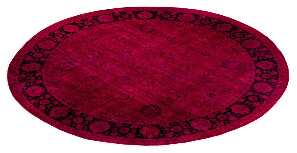 Overdyed One-of-a-Kind Hand-Knotted Area Rug Pink, 9' 1" x 9' 1"