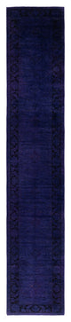 Overdyed area rugs blend vintage charm with bold, modern colors. This process involves taking distressed or faded traditional and antique rugs and saturating them with vibrant, monochromatic dye. This technique enhances the texture of the rugs while preserving the intricate patterns underneath. The result is a striking combination of old and new, with rich hues like deep blue, purple, or bright red. These rugs are perfect for eclectic and contemporary spaces, adding an artistic touch and serving as a dynamic focal point in any room.FeaturesHandcrafted by our team of experts in PakistanExceptional durability with 100 knots per inch constructionConstructed of 100% wool for a soft and cozy feelConvenient 2'' 6" x 14'' 1" dimensions offer the perfect balanced and inviting rug presenceNote that slight color variations may occur due to monitor differences. Embrace the individuality of each rug with minor variations in lengths, widths, and patternsDimensions:Area RugLength: 169 inchesWe believe that a beautiful room starts from the ground up. That is what inspired our founders to start selling hand-knotted rugs over 40 years ago. Since then, our passion for well-designed, impeccably hand-made rugs has never wavered.Experience - With more than 40 years in the rug business, our knowledge of premium hand-knotted rugs is exceptional.Quality - Our focus is on hand-knotted rugs and only hand-knotted rugs. At a minimum, it takes months to complete each rug by hand - that level of workmanship means our rugs are made to last.Variety - Our selection includes styles, sizes, and colors for every space and taste.