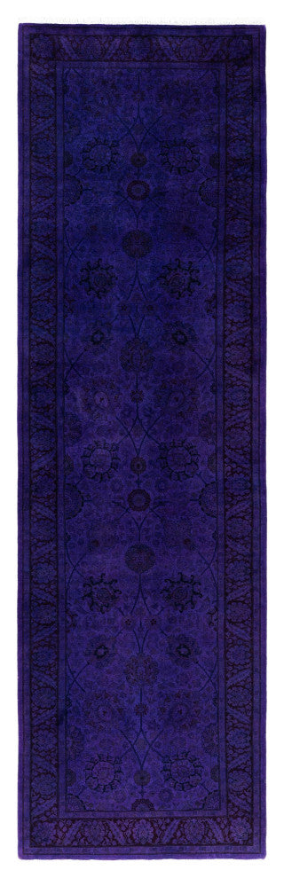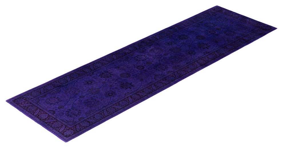 Overdyed One-of-a-Kind Hand-Knotted Area Rug Purple, 3' 1" x 10' 7"