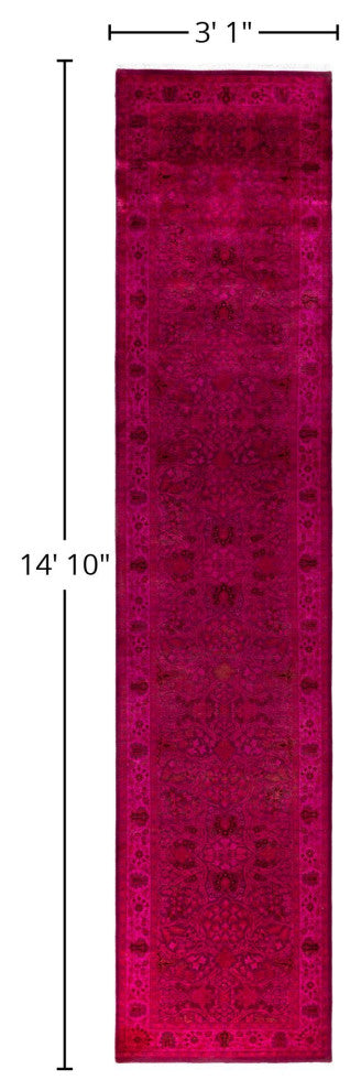 Overdyed area rugs blend vintage charm with bold, modern colors. This process involves taking distressed or faded traditional and antique rugs and saturating them with vibrant, monochromatic dye. This technique enhances the texture of the rugs while preserving the intricate patterns underneath. The result is a striking combination of old and new, with rich hues like deep blue, purple, or bright red. These rugs are perfect for eclectic and contemporary spaces, adding an artistic touch and serving as a dynamic focal point in any room.FeaturesHandcrafted by our team of experts in PakistanExceptional durability with 256 knots per inch constructionConstructed of 100% wool for a soft and cozy feelConvenient 3'' 1" x 14'' 10" dimensions offer the perfect balanced and inviting rug presenceNote that slight color variations may occur due to monitor differences. Embrace the individuality of each rug with minor variations in lengths, widths, and patternsDimensions:Area RugLength: 178 inchesWe believe that a beautiful room starts from the ground up. That is what inspired our founders to start selling hand-knotted rugs over 40 years ago. Since then, our passion for well-designed, impeccably hand-made rugs has never wavered.Experience - With more than 40 years in the rug business, our knowledge of premium hand-knotted rugs is exceptional.Quality - Our focus is on hand-knotted rugs and only hand-knotted rugs. At a minimum, it takes months to complete each rug by hand - that level of workmanship means our rugs are made to last.Variety - Our selection includes styles, sizes, and colors for every space and taste.