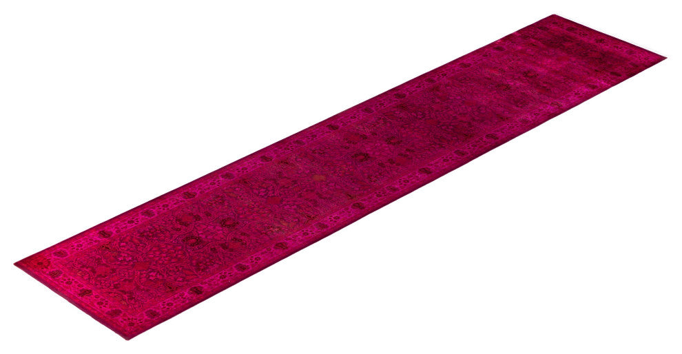 Overdyed One-of-a-Kind Hand-Knotted Area Rug Purple, 3' 1" x 14' 10"