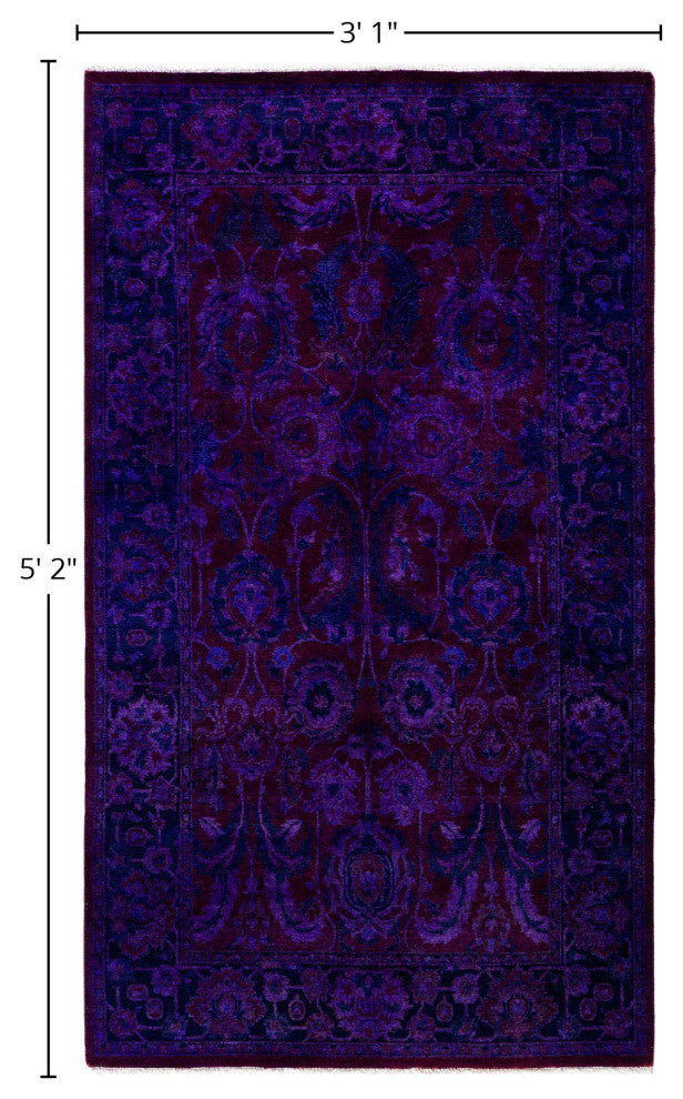 Overdyed One-of-a-Kind Hand-Knotted Area Rug Purple, 3' 1" x 5' 2"