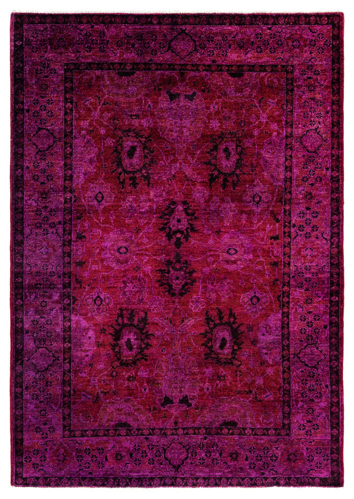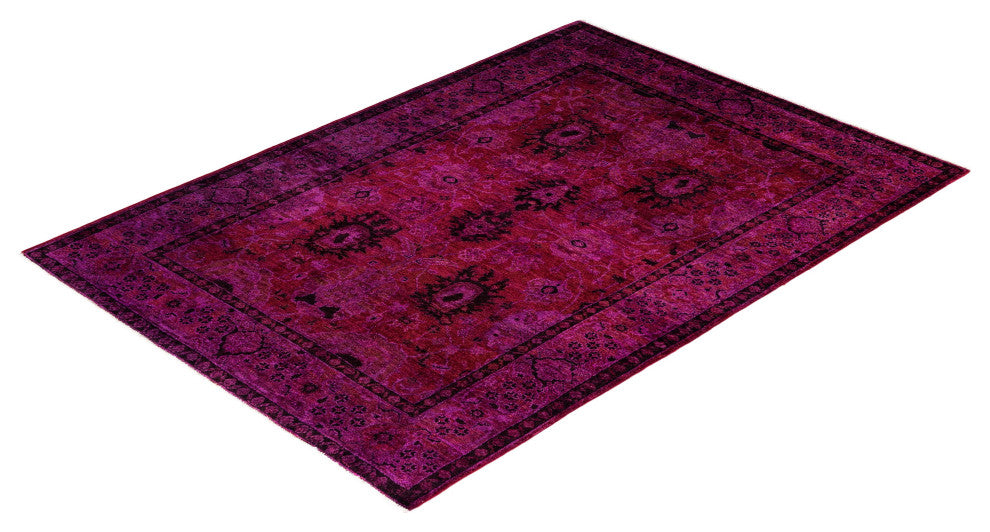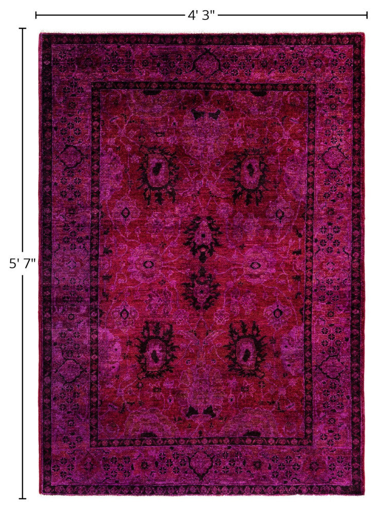 Overdyed One-of-a-Kind Hand-Knotted Area Rug Purple, 4' 3" x 5' 7"