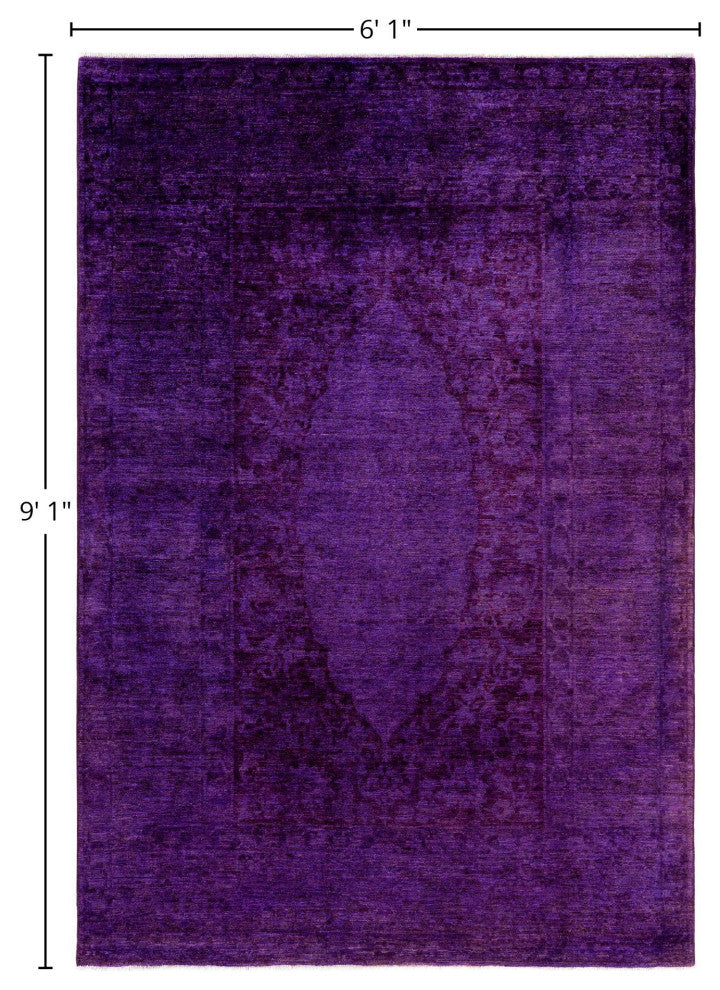 Overdyed One-of-a-Kind Hand-Knotted Area Rug Purple, 6' 1" x 9' 1"
