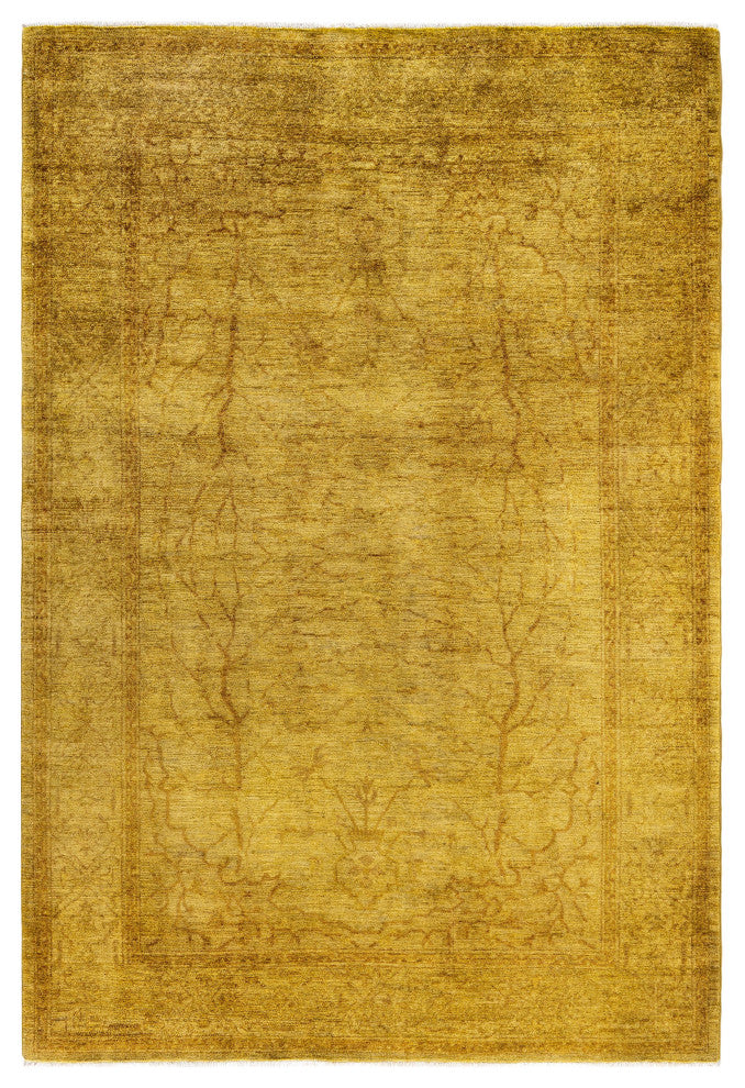 Overdyed One-of-a-Kind Hand-Knotted Area Rug Yellow, 6' 3" x 9' 2"