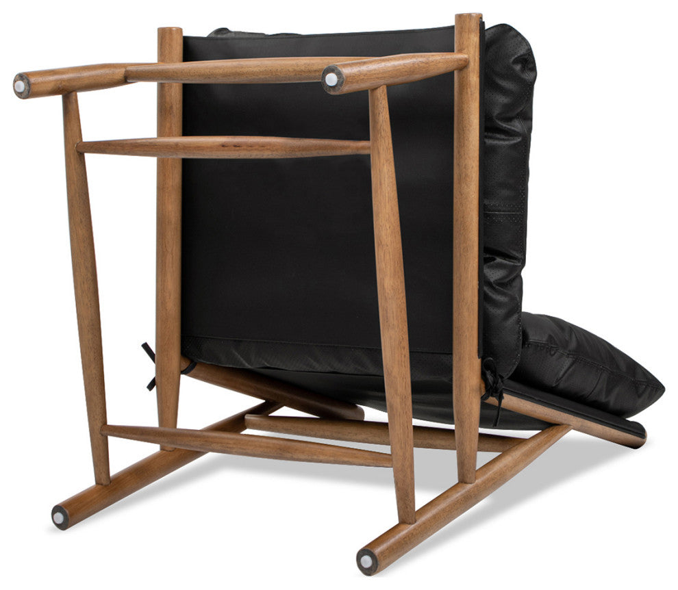 Oxford 26.5" Leather Mid-Century Modern Accent Chair, Noir Black