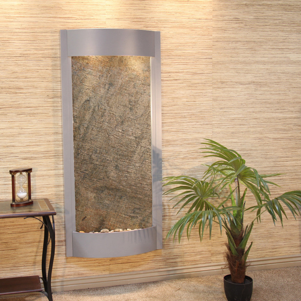 Pacifica Waters Indoor Water Fountain, Green Featherstone, Silver Metallic