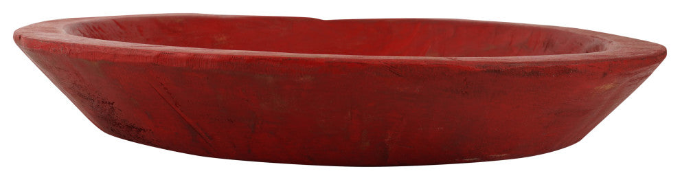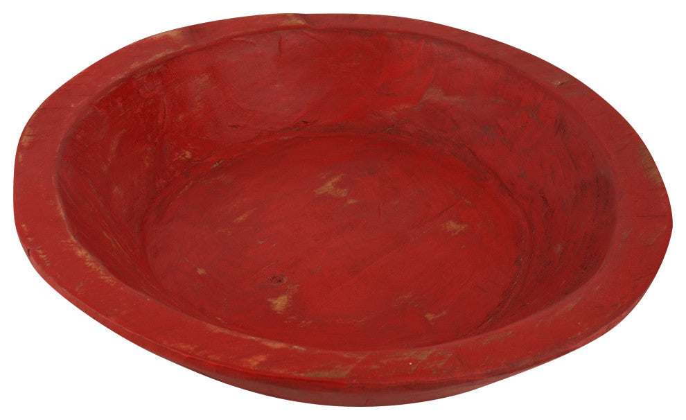 Painted Round Rustic Farmhouse Wooden Dough Bowl, Red, Round