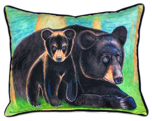 This gorgeous pair of Bear and Cub print indoor / outdoor pillows are from Betsy Drake Interiors. Proudly made in the USA, each pillow features a wonderful watercolor print of a mother black bear and her cub, based on original artwork by artist Betsy Drake. Each pillow measures 16 inches tall, 20 inches long, has a 100% polyester cover, which resists fading and wear, giving you years of use, and is stuffed with polyester. Recommended care instructions are to spot clean, only.
