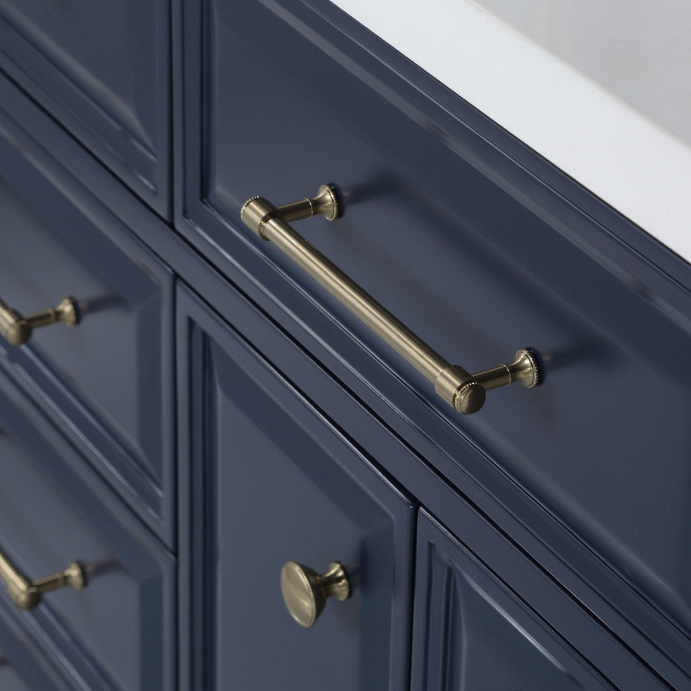 To come up with a great design idea for your bathroom, the vanity should be a premier element that is designed for your space, with ample storage and timeless details. Your bathroom is even more exciting as it incorporates a choice of three cabinet colors with elegant slim metal handles. With its empire palace inspired sense of style and contemporary design, the Palace bathroom vanity collection with its stunning white Quartz countertop attractively goes with the flow. Distinctive flip-out front panel design enhances the form and function. This distinguished bathroom vanity has a royal, regal character that makes you feel like the ruler of your new day.