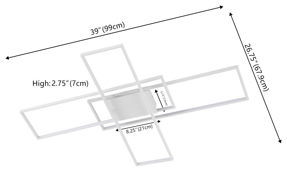 Our minimalist, contemporary ceiling light features overlapping rectangles; one of them swivels to change the sputnik-like shape to a linear design. Perfect for low ceilings, this fixture''s integrated LEDs provide bright, warm light. Connect to a wall-mounted dimmer switch to set the mood in the living room, dining room, bedroom or home office.