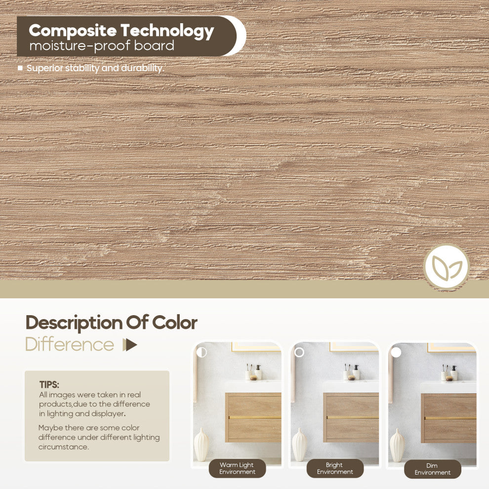 Palencia Floating Bath Vanity With Composite Stone Top, North American Oak, 72", No Mirror