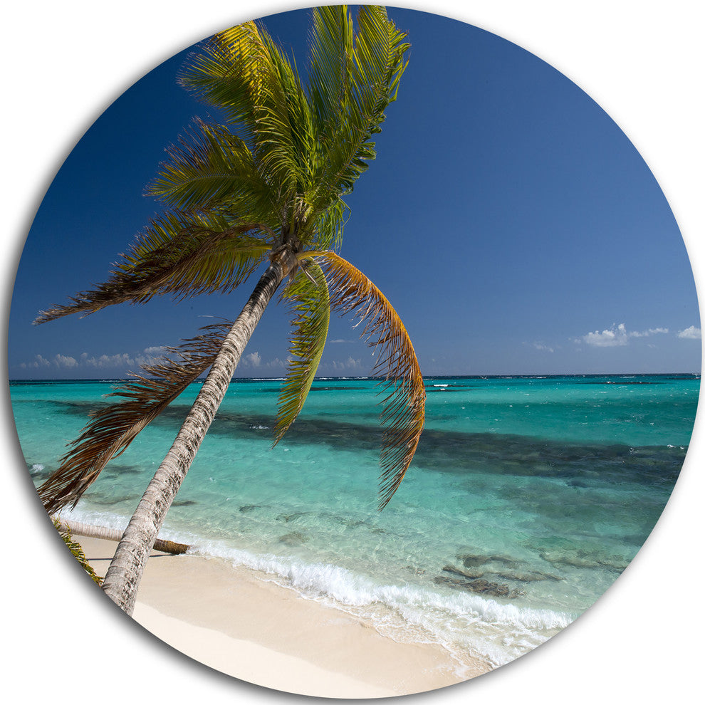 Palm Bent To Picturesque Seashore, Modern Seascape Round Wall Art, 36"