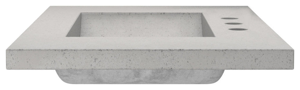 The Palomar Vanity Top with Integral Sink is handcrafted of NativeStone®, an innovative blend of cement and jute fiber that is surprisingly lightweight for concrete, remarkably strong, and refreshingly easy to clean. Available in four finishes: Ash, Slate, Pearl and Earth; pairs beautifully with Native Trails vanity bases.Due to their handcrafted nature, no two products will be exactly the same and may vary in finish, texture and other details.Outside Dimensions (30"): 30.5"³ x 21.75"³ x 5.25"³Outside Dimensions (36"): 36.5"³ x 21.75"³ x 5.25"³Outside Dimensions (48"): 48.5"³ x 21.75"³ x 5.25"³Features:-Top features a rectangular integrated sink basin (Basin size: 18" x 12" x 4" with 1.5" drain) -Handcrafted from an innovative blend of concrete and jute fiber-NEXT-GENERATION SEALER! "“ Now sealed with revolutionary NativeStone® Shield for the ultimate protection from stains, scratches and cracks-Pair with any compatible vanity base from Native Trails to complete your vanity set-Covered under Native Trails limited lifetime warranty-Clean with mild, non-abrasive soap and cleaners-UPC/cUPC compliant