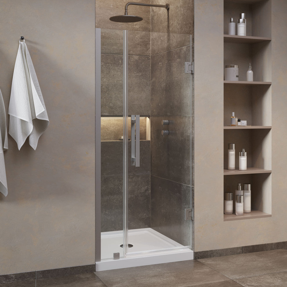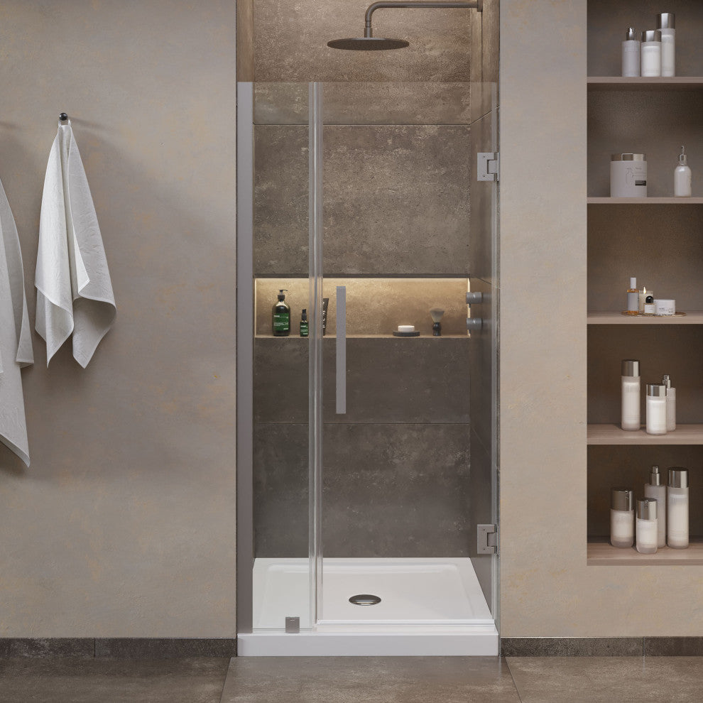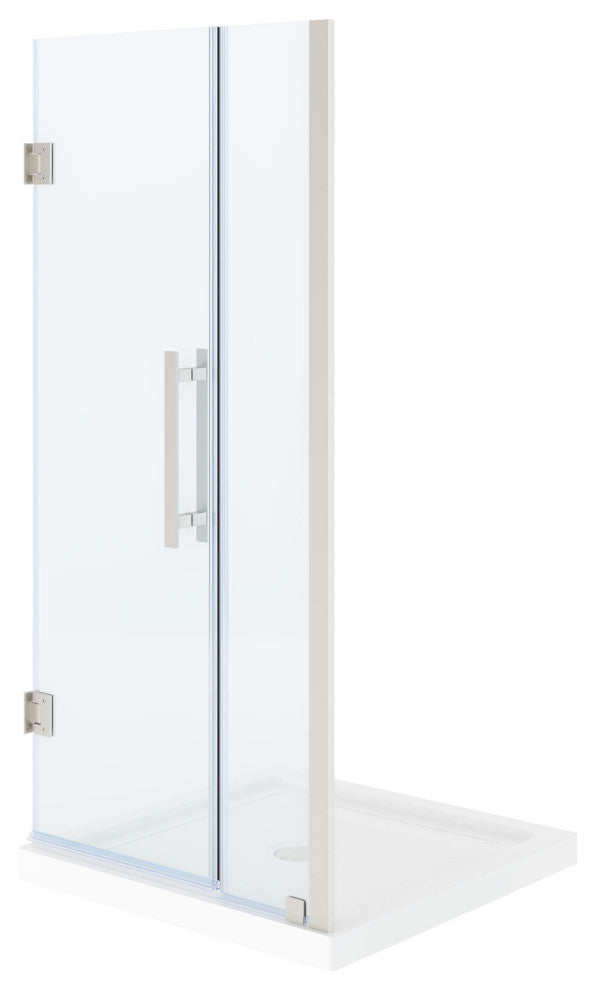 The Panama 36 in. frameless hinge shower door kit from OVE Decors has a modern, minimalist enclosure design that pairs high functionality with contemporary style. The set comes with premium quality hardware, complete with a sleek satin nickel finish, and includes a 23 in. wide door panel, 10 in. wide inline panel and 36 in. x 36 in. x 2 3/4 in. shower base pan, ideal for an alcove installation. The glass door panel is made from premium 8mm (5/16") thick certified tempered glass, and features high quality magnetic door strips and engineered hardware that ensure smooth opening and closing and no leaks. The center-drain shower base is made of premium fiberglass-reinforced acrylic and has a slip-minimizing textured surface and easy-to-clean construction.Alcove shower enclosure kit including Panama hinge shower door and center-drain shower base panShower base size: 36 in. x 36 in. x 2 3/4 in.Designed for total alcove space: 36 in. Width x 36 in. Depth x 72 3/4 in. HeightIncludes one glass door panel, one glass inline panel, hardware and shower base; walls and accessories not includedFrameless reversible door installation with built-in door magnet for a secure and tight close; no more leaks, no more wet floorsOut-of-plumb adjustability and reversible design for easy left or right-hand shower door installationState-of-the-art protective glass coating repels water, resists soap scum and limescale, and keeps your shower door effortlessly clean and sparklingShower door built with premium 8mm (5/16") thick safety tempered glass, certified by the Safety Glazing Certification Council (SGCC)Advanced protective metal coating ensures your shower hardware maintains its brilliant shine and durability for years to comeOversized handle and hardware in satin nickel finish includedCenter-drain shower pan designed for direct-to-stud installation with attachable nailing flanges (Requires mortar base under the pan for installation)Shower Base is CSA certified; professional installation is requiredIncludes 5-year warranty on glass panels and pan, and 1-year warranty on hardware. Warranty requires installation by fully insured and licensed plumber.Please review the instruction manual PDF for detailed product dimensions to ensure that the shower door is right for your bathroom''s measurementsNow with new, improved packaging"”fewer boxes for easier installation