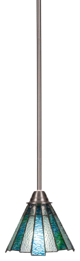 Paramount 1-Light Mini Pendant, Brushed Nickel, 7" Sea Ice Art Glass