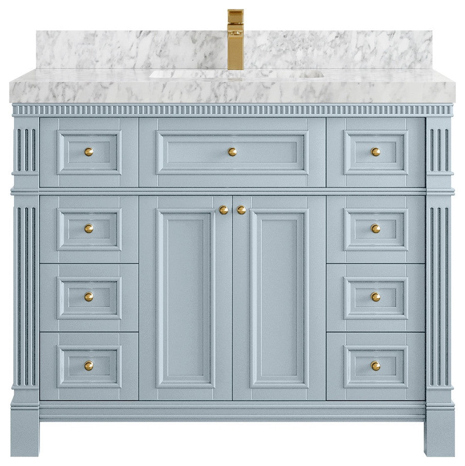 Paris 42" Single Sink Bathroom Vanity, Blue Heather 2" Carrara Marble