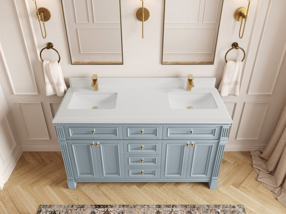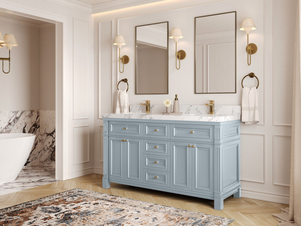 Paris 60" Double Sink Bathroom Vanity, Blue Heather 1.5" White Quartz