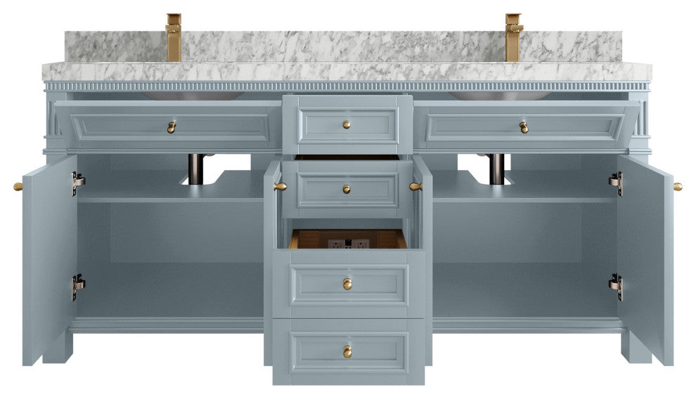 Paris 72" Double Sink Bathroom Vanity, Blue Heather 2" Carrara Marble