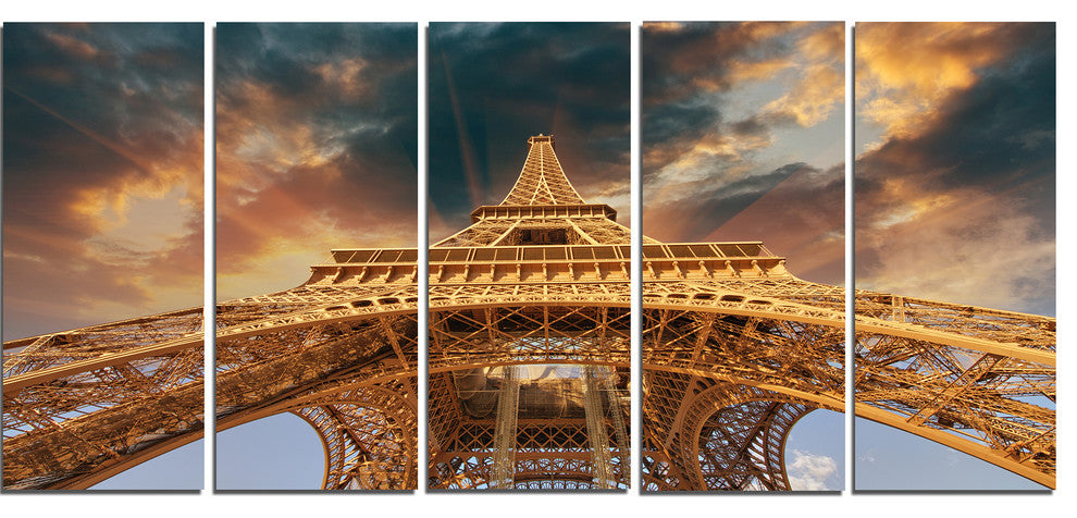"Paris Eiffel Tower in Paris With Sunset Colors" Wall Art, 60"x28", 5-Panels