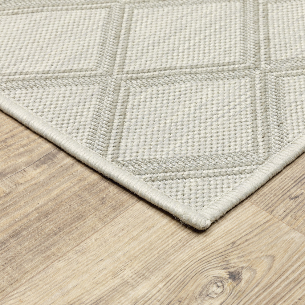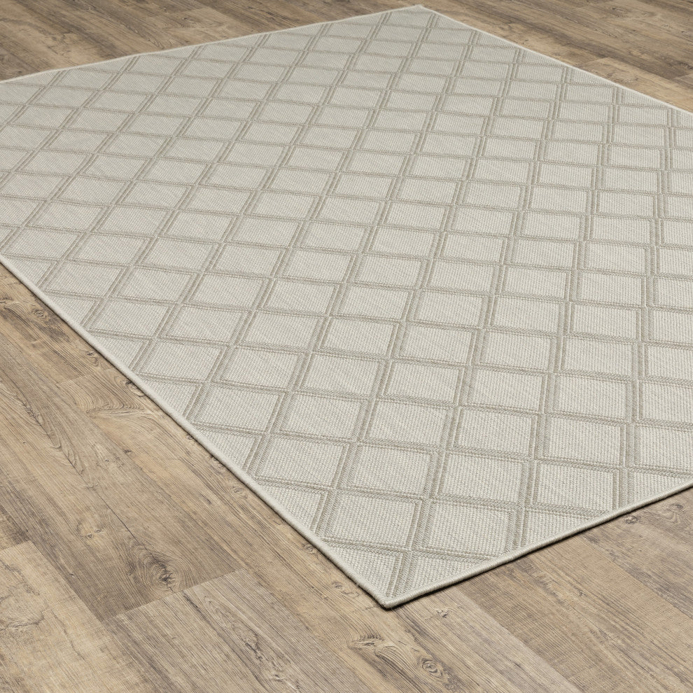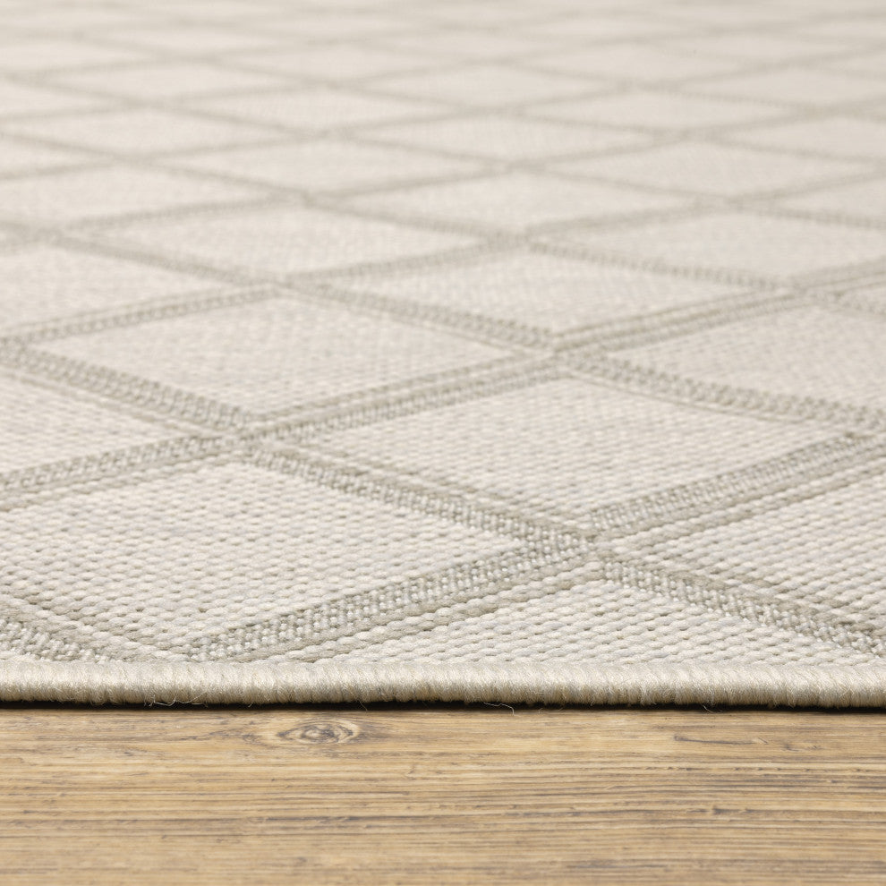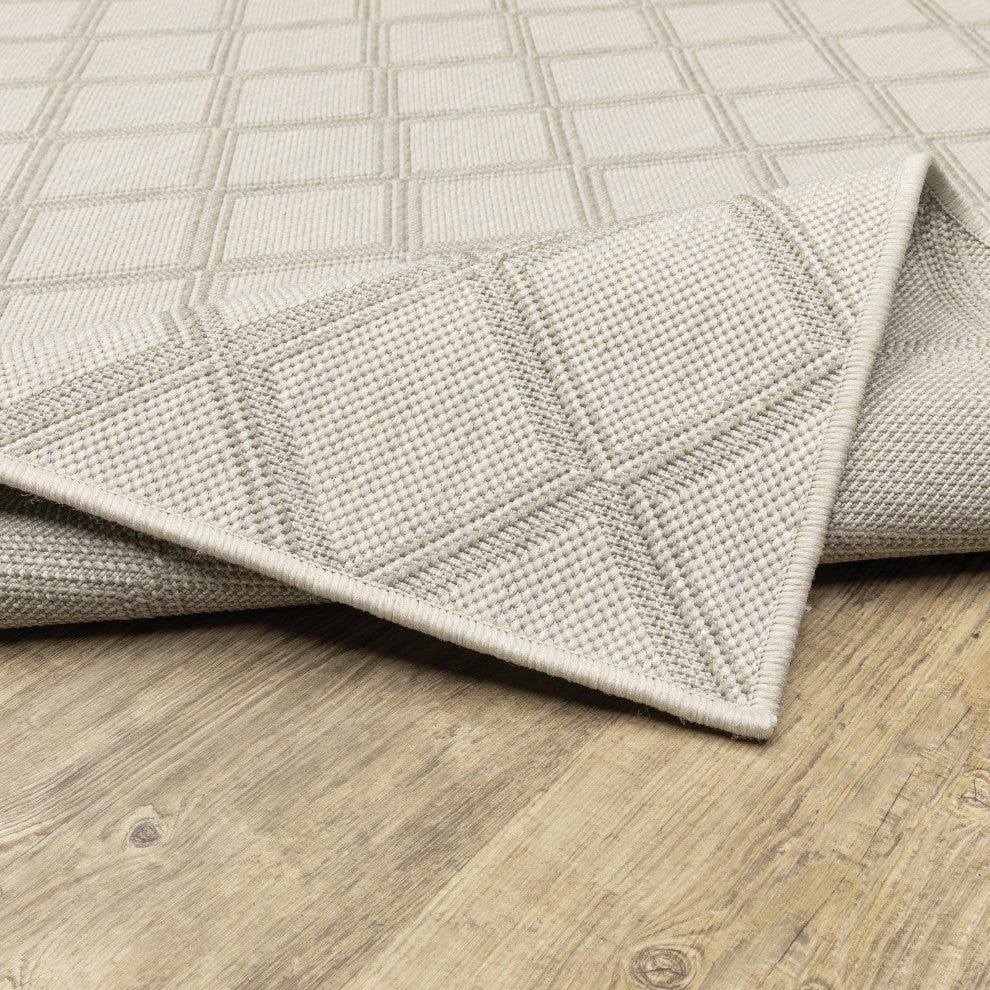 Parlan Geometric Lattice Indoor-Outdoor Area Rug, Ivory, 7'10"x10'