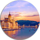 Parliament And Bridge Over Danube, Cityscape Disc Metal Artwork, 11"