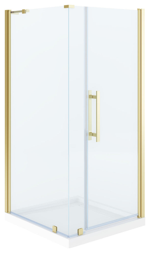 Pasadena 36"Wx36"Dx74 3/4"H Corner Pivot Shower Kit Gold Base