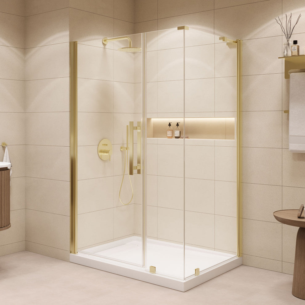 Pasadena 48"Wx36"Dx74 3/4"H Corner Pivot Shower Kit Gold Base