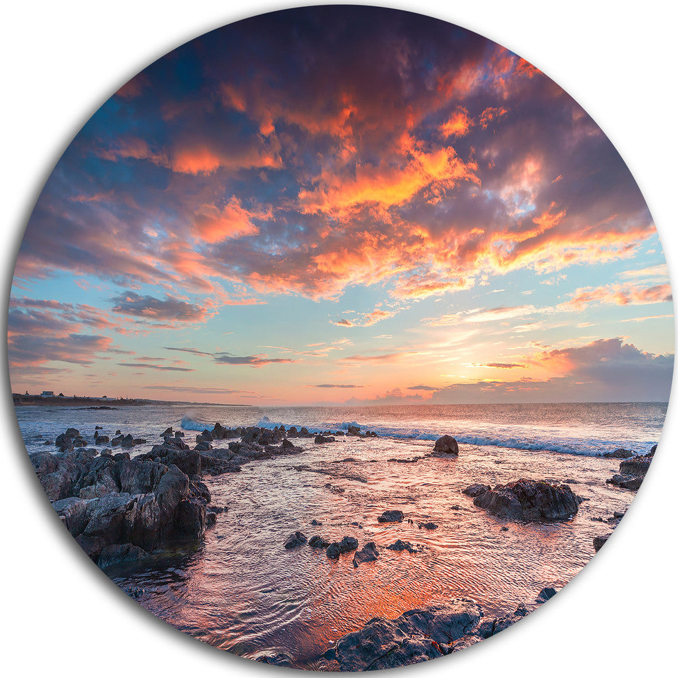 Bring Contemporary Abstraction to your home with this large Circle Metal wall art. This Passero Cape Spring Sunrise Metal Artwork makes it the focal point of any room or office.