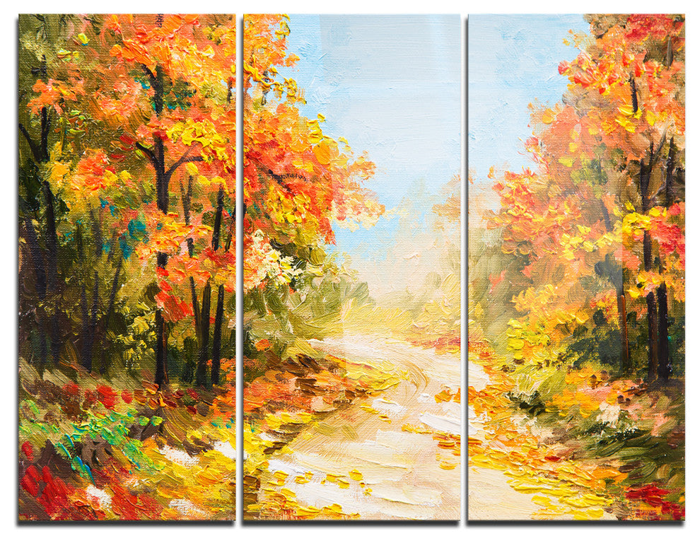 "Path in Autumn Forest" Glossy Metal Wall Art, 3 Panels, 36"x28"