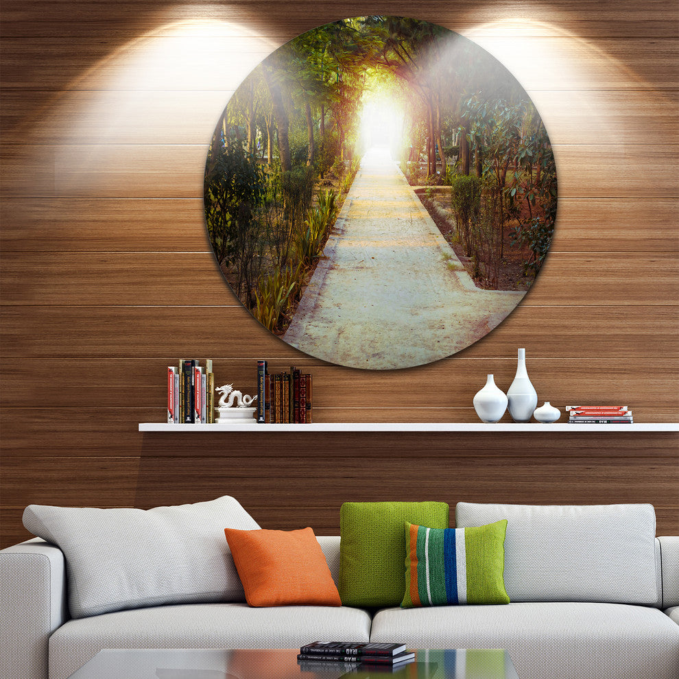 Path To Magical Mystery Woods, Landscape Photo Disc Metal Wall Art, 23"