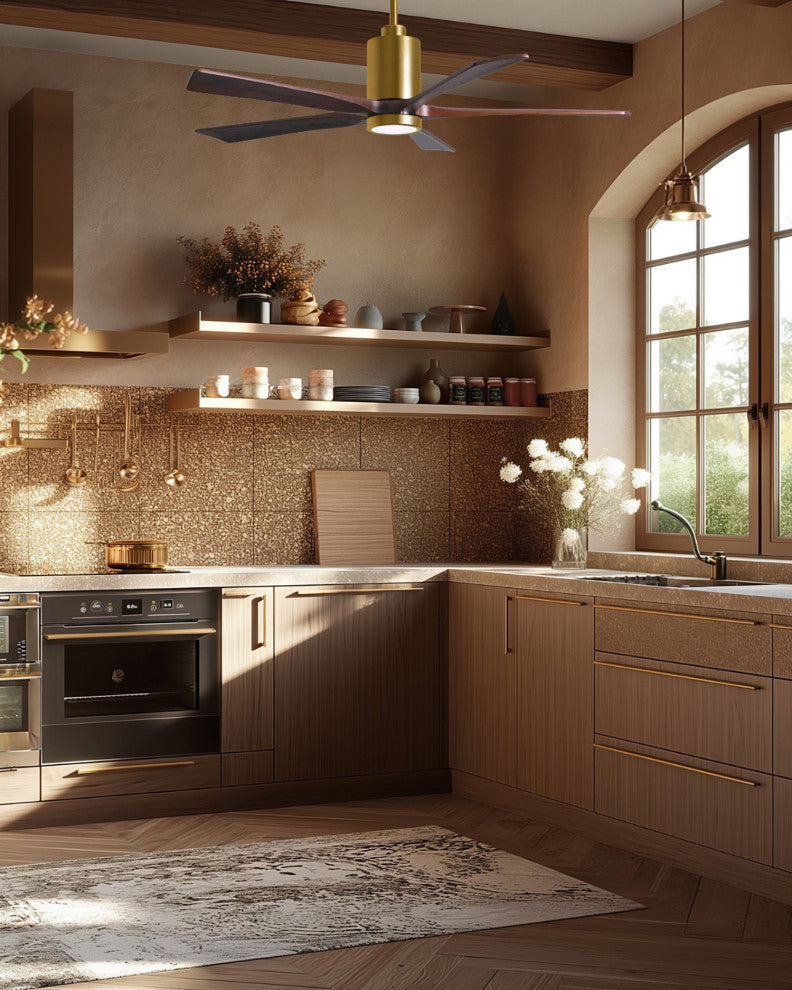Patricia-5 5-Blade Ceiling Fan, LED Light Kit, Brushed Brass/Walnut Tone, 60