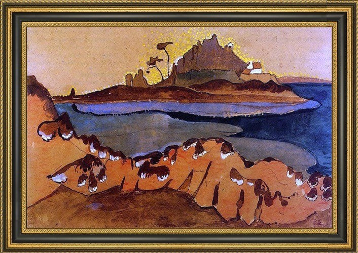 18" x 27" Paul Serusier The Ile de la Douane the Mouthe of the Trieux River framed premium canvas print reproduced to meet museum quality standards. Our Museum quality canvas prints are produced using high-precision print technology for a more accurate reproduction printed on high quality canvas with fade-resistant, archival inks. Our progressive business model allows us to offer works of art to you at the best wholesale pricing, significantly less than art gallery prices, affordable to all. This artwork is hand stretched onto wooden stretcher bars, then mounted into our 3 3/4" wide gold finish frame with black panel by one of our expert framers. Our framed canvas print comes with hardware, ready to hang on your wall. We present a comprehensive collection of exceptional canvas art reproductions by Paul Serusier.