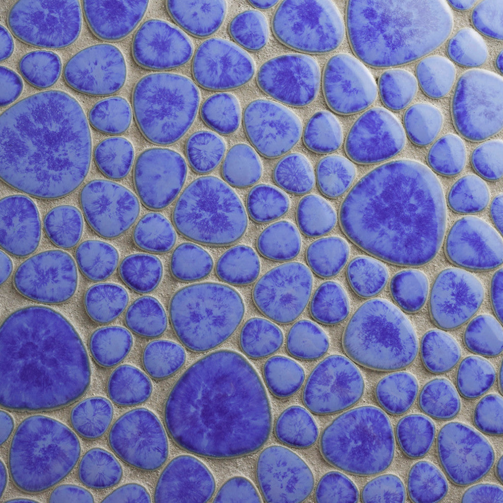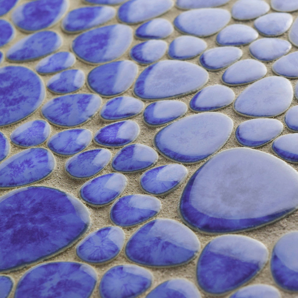 Our Pebble Blue Cloud Porcelain Mosaic Tile features a high-gloss blue glaze with milky and gray accents for a beautiful, organic effect to enhance any space whether commercial or residential. The impervious nature of the pebble-shaped tiles makes the mosaic an ideal design element for baths, spas, kitchens or pool trim, the low water absorption making it frost resistant for outdoor use but the glaze causes the surface to be marginally skid resistant when wet and so is recommended for indoor floor use. Tile is the better choice for your space. This tile is made from natural ingredients, making it a healthy choice as it is free from allergens, VOCs, formaldehyde and PVC.