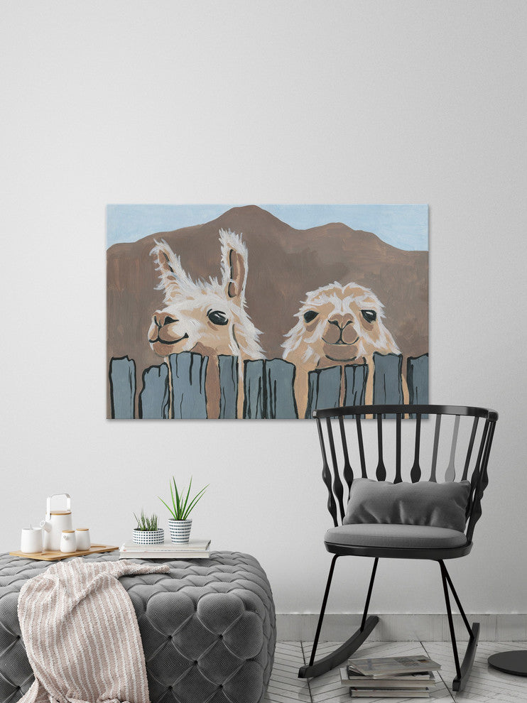 "Peekaboo Llamas" Painting Print on Wrapped Canvas, 18"x12"