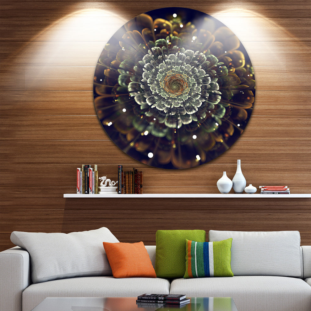 Perfect Fractal Flower In Orange And Silver, Round Metal Wall Art, 11"