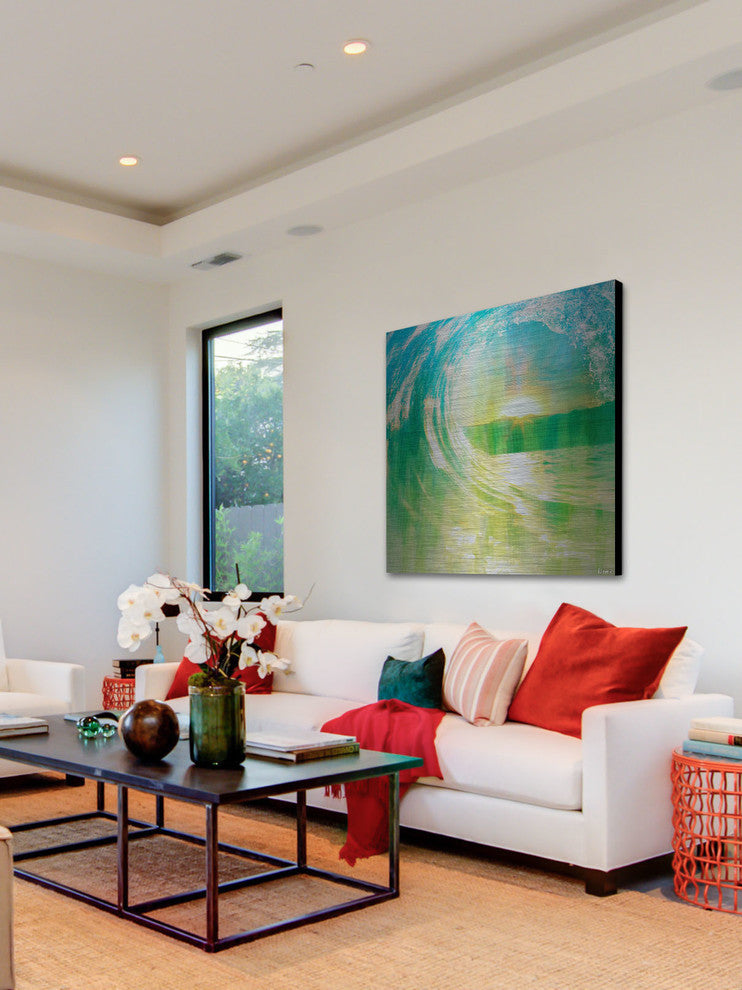 Striking and unique, the "Perfect Waves" UV Ink Print on Brushed Aluminum by Parvez Taj will bring your walls to life. Printed on aluminum, this 40 inch wide by 40 inch tall beach style artwork will make a statement in any living room, dining room, or bedroom.- Fine art UV ink print on brushed aluminum by Parvez Taj- The aluminum pops the colors and creates an iridescent shimmer, which gives depth to a room- Arrives ready to hang - Includes a certificate of authenticity- Artist signature on the front