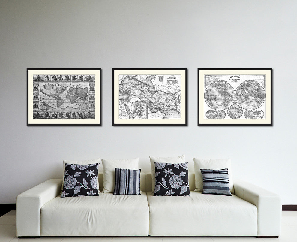 Persia Iraq Iran Afghanistan Vintage B&W Map Canvas Print, 16"x21"