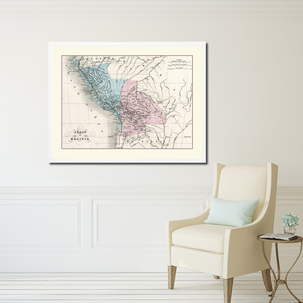 Peru, Bolivia Old Map Print On Canvas With Picture Frame Art Collection 16" X 21