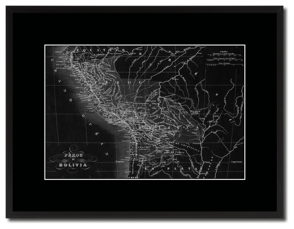Peru Bolivia Vintage Monochrome Map Canvas, 16"x21"
