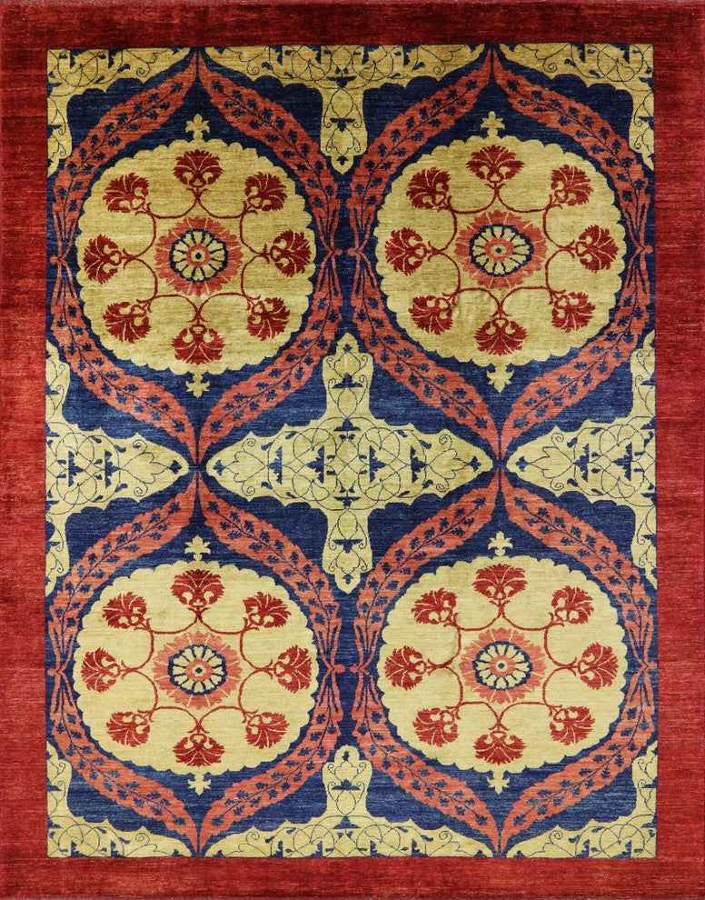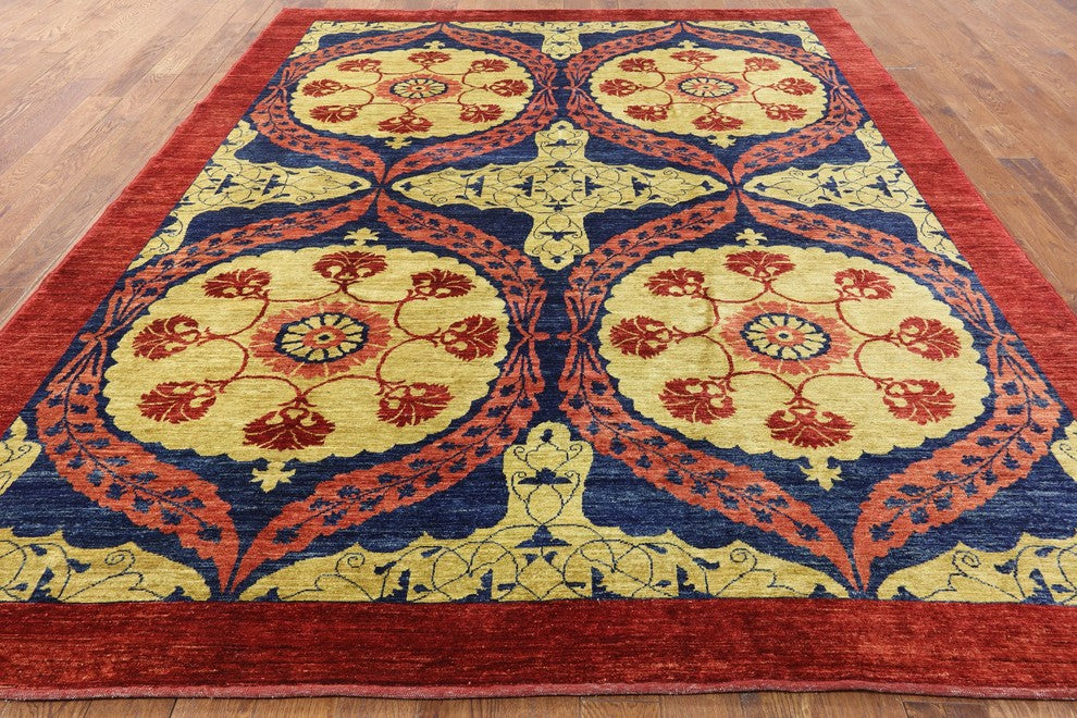 Peshawar Chobi Quality Hand-Knotted Wool Rug, 9'x11'