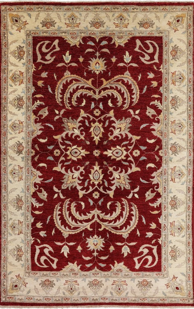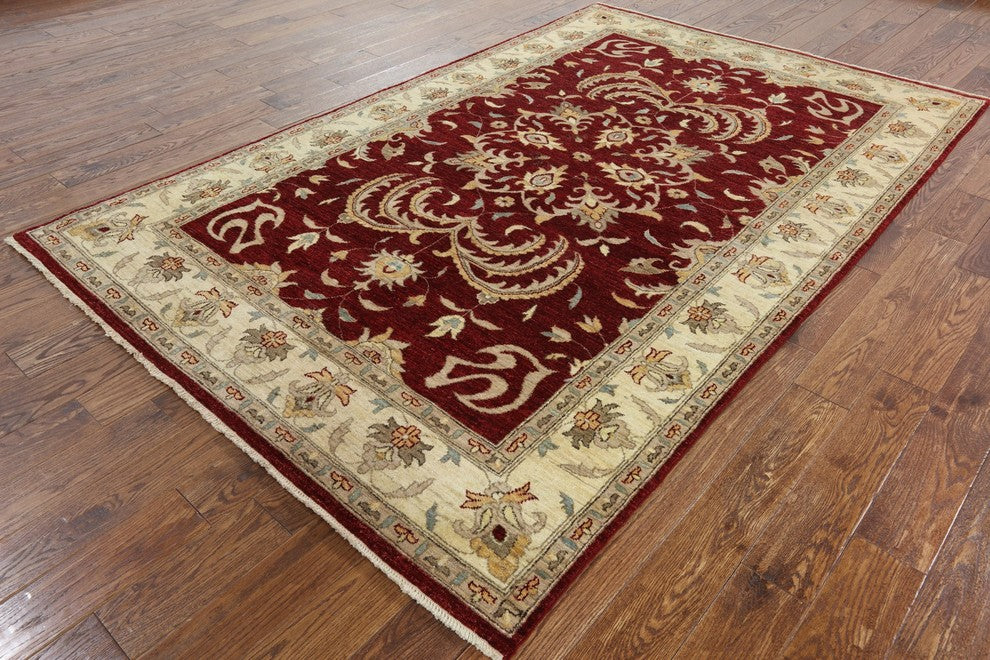 Peshawar Oriental Chobi Oushak Red Hand-Knotted Wool Rug, 6'x10'