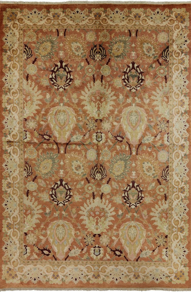 Peshawari Oushak Style Rust Chobi Hand-Knotted Wool Rug, 6'x9'