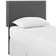 Why We Love it Why We Love It Enhance your bedroom with the elegantly designed Phoebe Headboard in Fabric. Minimalist and chic, Phoebe transforms with sleek lines and a stunning nail button trim accented in silver. Phoebe features a solid wood frame, adjustable black coated metal legs, fine polyester upholstery, and dense foam padding for ultimate support. Fully Compatible with Sharon, Sherry and Helen Platform Bed Frames. Set Includes: One - Phoebe Twin Headboard Fine Polyester Upholstery Silver Accent Copper Buttons Solid Wood Frame Particleboard Panel Dense Foam Padding Mounts in Four Locations Assembly Required More Information Overall Product Dimensions: 3L x 42.5W x 40 - 47.5H Floor to Bottom of Headboard: 17.5 - 25H Assembly Required:Y Product Material:POST is 990mmH (2PCS),iron black paint,Yuhua cloth,foam density is 25KGS / M3 silk cotton big Tongding ATO / SUN / WHE color cloth with color B,other cloth with C colors.The headboard have four adj position, Copper nail size is 20mm, Assembly Required Product Weight:23 More Information