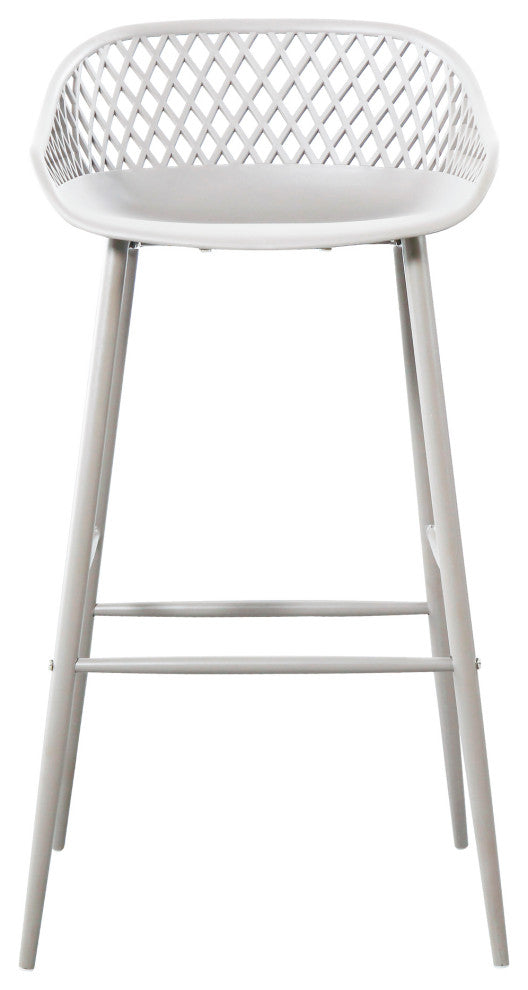 Take a seat in the stylish and comfortable Piazza Bar Stool. Made with a durable polypropylene, this chair comes in several colors that will be sure to complement your outdoor design with its whicker backing and powder coated metal legs. The perfect addition to any table or as extra seating for guests.