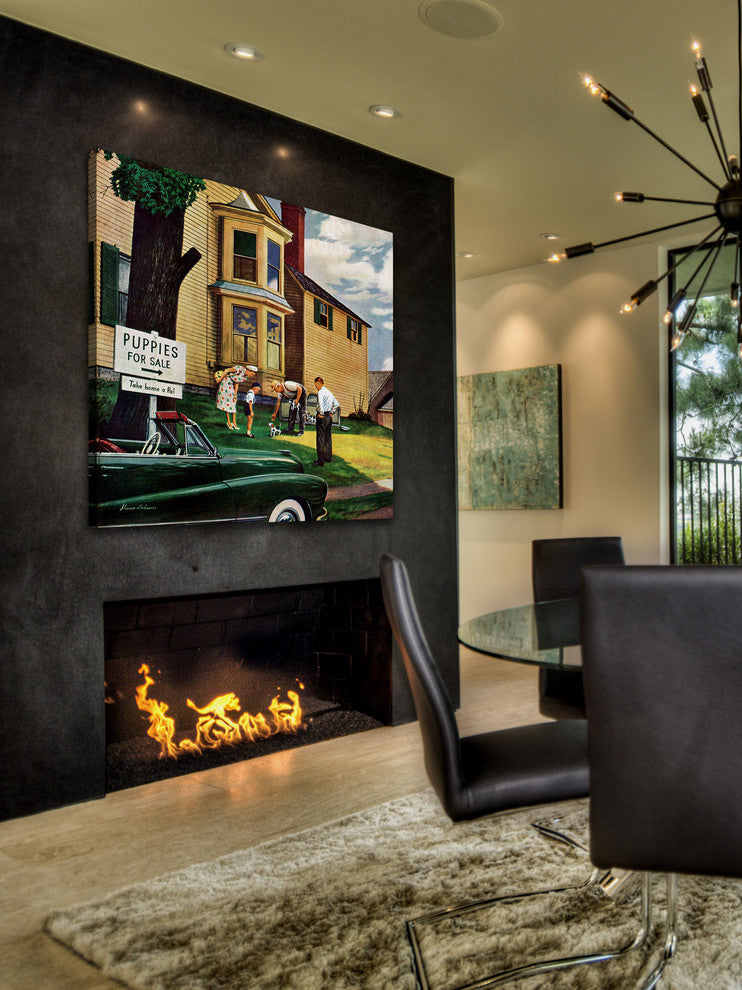 "Picking a Puppy" Painting Print on Canvas by Stevan Dohanos
