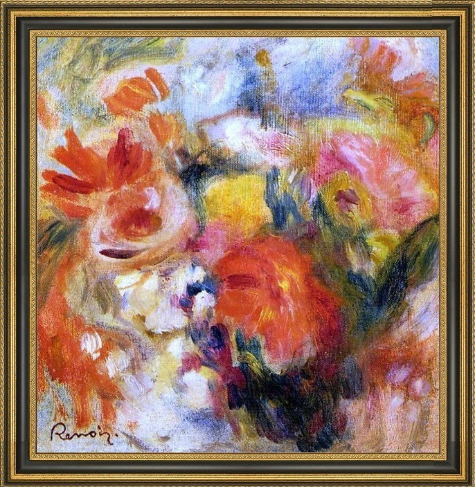 16" x 16" Pierre Auguste Renoir Flower Study framed premium canvas print reproduced to meet museum quality standards. Our Museum quality canvas prints are produced using high-precision print technology for a more accurate reproduction printed on high quality canvas with fade-resistant, archival inks. Our progressive business model allows us to offer works of art to you at the best wholesale pricing, significantly less than art gallery prices, affordable to all. This artwork is hand stretched onto wooden stretcher bars, then mounted into our 3 3/4" wide gold finish frame with black panel by one of our expert framers. Our framed canvas print comes with hardware, ready to hang on your wall. We present a comprehensive collection of exceptional canvas art reproductions by Pierre Auguste Renoir .