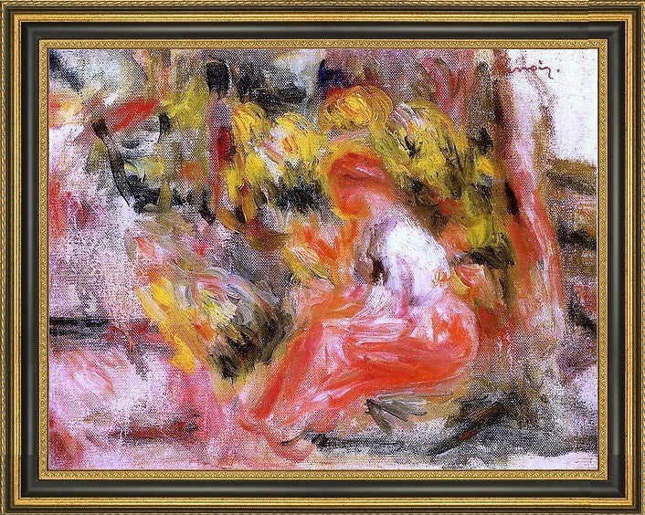 18" x 24" Pierre Auguste Renoir Young Girl Seated in a Garden framed premium canvas print reproduced to meet museum quality standards. Our Museum quality canvas prints are produced using high-precision print technology for a more accurate reproduction printed on high quality canvas with fade-resistant, archival inks. Our progressive business model allows us to offer works of art to you at the best wholesale pricing, significantly less than art gallery prices, affordable to all. This artwork is hand stretched onto wooden stretcher bars, then mounted into our 3 3/4" wide gold finish frame with black panel by one of our expert framers. Our framed canvas print comes with hardware, ready to hang on your wall. We present a comprehensive collection of exceptional canvas art reproductions by Pierre Auguste Renoir.