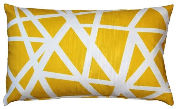 This versatile geometric accent pillow is both modern and elegant. The bold bird?s nest pattern featuring dynamic white stripes on a sunflower yellow background will add contemporary flair to your home d?cor. The Bird''s Nest Throw Pillow is a great addition to any contemporary designed room. The pillow is perfect as a standalone accent piece or can be used to creatively tie in other decor pieces such as abstract art objects. The bird?s nest design is printed on both sides on an indoor/outdoor spun polyester fabric.FEATURES- Size: 12"x19" Square- 100% Polyester- Same fabric front and back- Design printed on front and back- Knife edge seams- Color matched zipper closure- Hand wash cold separately- Filling: Polyester Fiber Fill- Pillow dimensions always refer to the pillow cover width and length while lying flat unstuffed and are rounded up to the nearest whole inch.